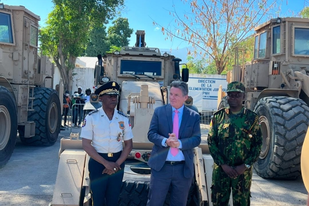 Le lundi 10 février 2025, une cérémonie officielle s’est tenue au siège de la Direction Générale de la Police Nationale d’Haïti (PNH), marquant la remise d’un lot d’équipements par l’ambassade des États-Unis. Ce don important comprend neuf véhicules, plusieurs camions ainsi qu’un bulldozer, des matériels destinés à renforcer la capacité opérationnelle de la police haïtienne dans sa lutte contre l’insécurité.