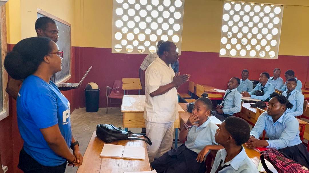 En pleine crise sécuritaire, le Fonds National de l’Éducation (FNE) continue de défendre l’accès à l’éducation pour les élèves les plus vulnérables. Ce samedi, la directrice générale du FNE, Mme Sterline Civil, accompagnée du ministre de l’Éducation nationale et de la Formation professionnelle, M. Antoine Augustin, s’est rendue au Lycée Horatius Laventure, où sont relocalisés plusieurs élèves déplacés en raison des violences.