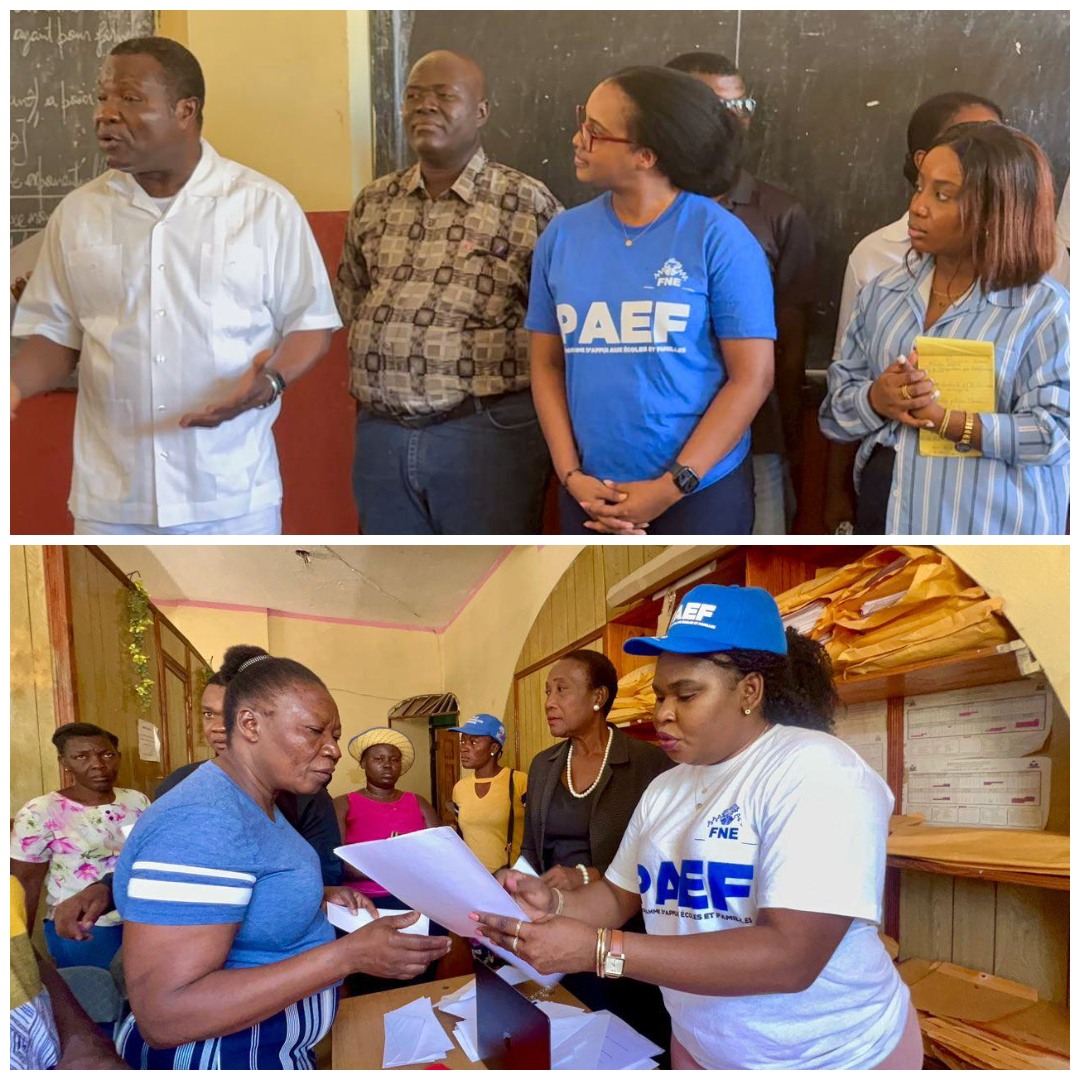 Dans le cadre de la mise en œuvre du programme d’Appui aux Écoles et aux Familles, des chèques ont été remis ce samedi à plusieurs dizaines de parents, au local du MENFP, en présence du ministre Antoine Augustin et de la directrice générale du FNE, Sterline Civil.