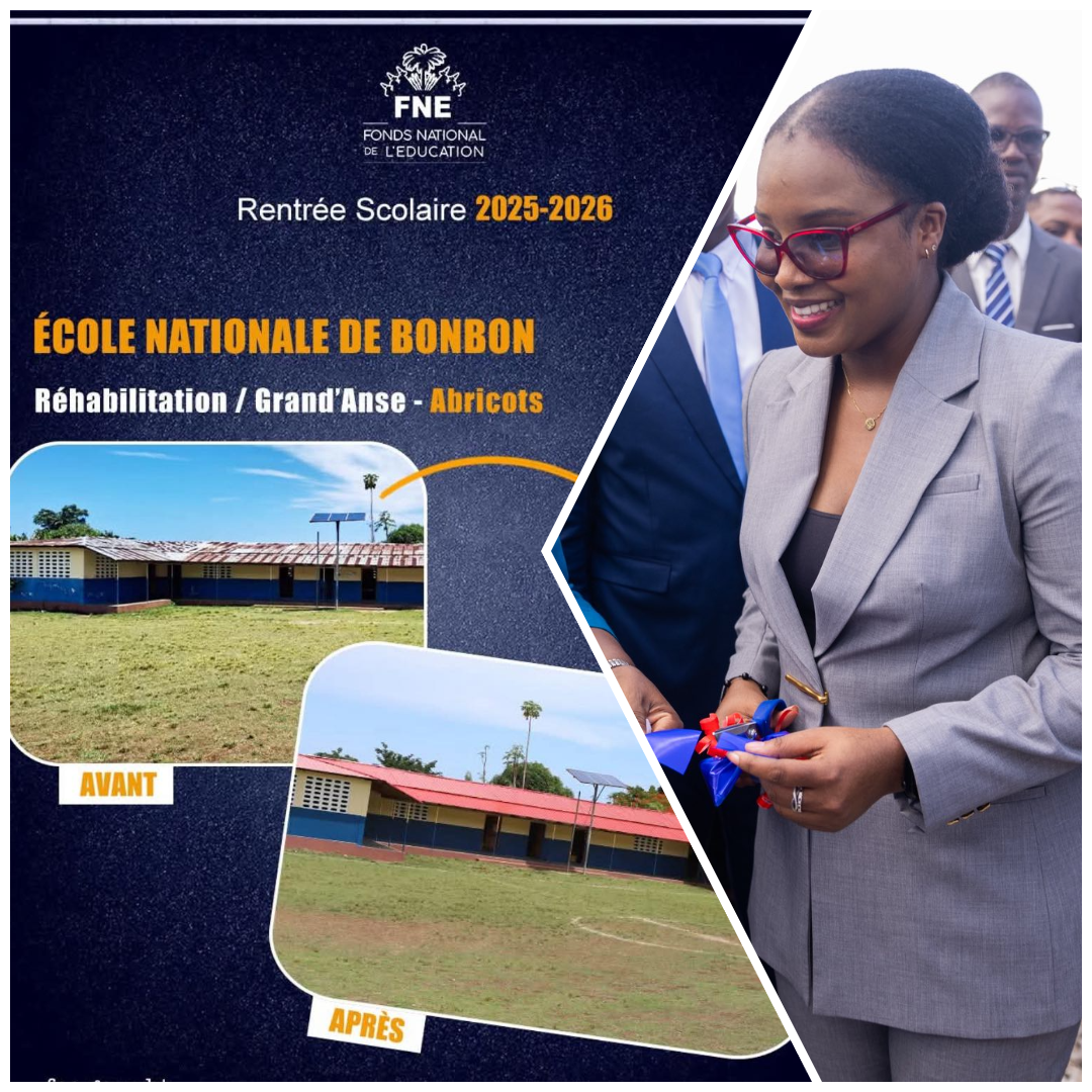 Abricots, Grand’Anse – Là où s’élevait autrefois un bâtiment à la toiture rouillée, percée et inquiétante, se dresse désormais une école flambant neuve. L’École nationale de Bonbon, située dans la commune des Abricots, a été entièrement réhabilitée grâce au Fonds national de l’Éducation (FNE), juste à temps pour la rentrée scolaire 2025-2026.
