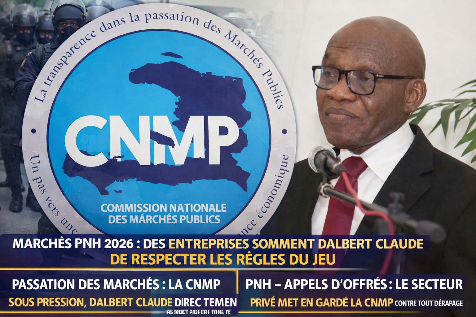 Dans le cadre du lancement du processus de passation des marchés publics pour l’exercice fiscal 2026, plusieurs entreprises ayant participé aux appels d’offres de la Police nationale d’Haïti (PNH) appellent le coordonnateur national de la Commission nationale de passation de marchés publics (CNMP), Dalbert Claude, au strict respect des procédures légales et administratives en vigueur.