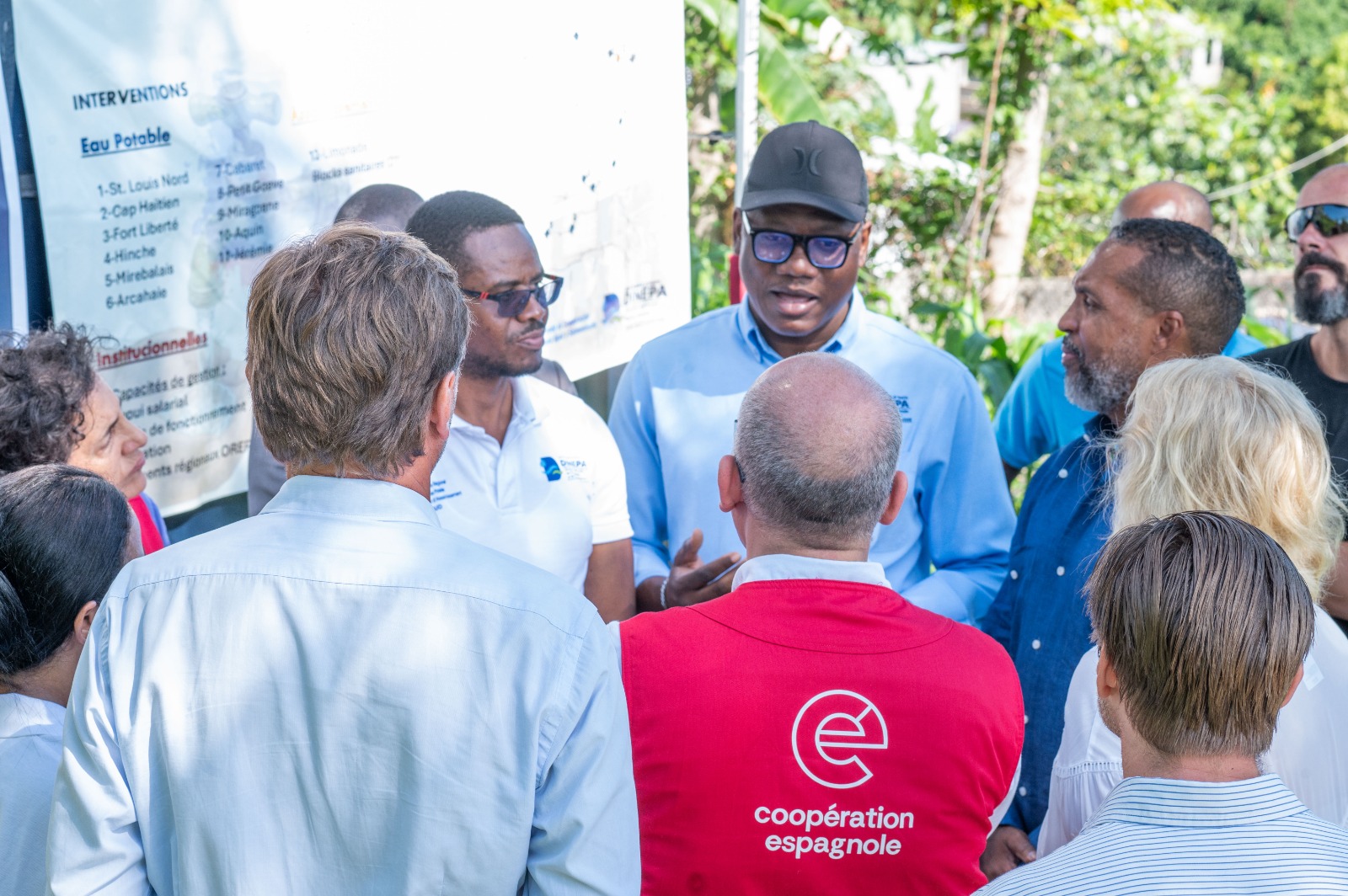 Les échanges ont principalement porté sur l’état d’avancement des travaux en cours, financés par AECID / FCASS et le programme Urb-Ayiti. Ce cofinancement, issu de plusieurs entités de l’Union européenne, vise à renforcer durablement le secteur de l’Eau Potable et de l’Assainissement (EPA) dans la région Sud.
